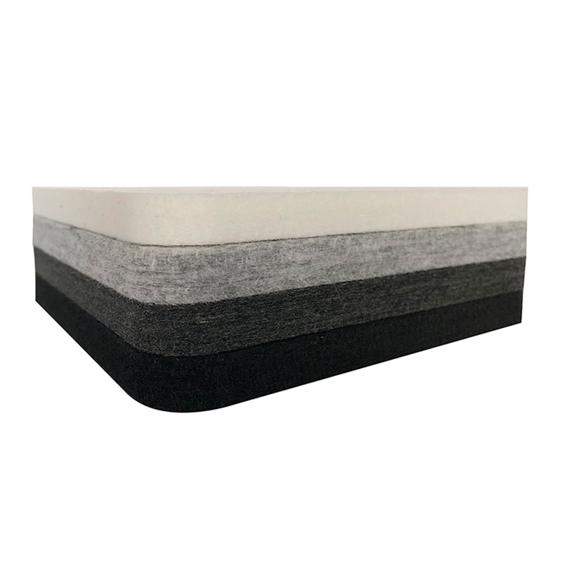 Wszystkie włókna są splecione ze sobą poziomo i pionowo podczas produkcji, co sprawia, że płyta akustyczna PET jest sztywna, elastyczna i odporna na uderzenia.Dzięki dziurkowaniu igłowemu w panelu akustycznym PET znajduje się wiele maleńkich otworów, co sprawia, że panel akustyczny PET jest świetnym produktem akustycznym do redukcji hałasu i poprawia dźwięk, a przestrzeń jest cichsza.