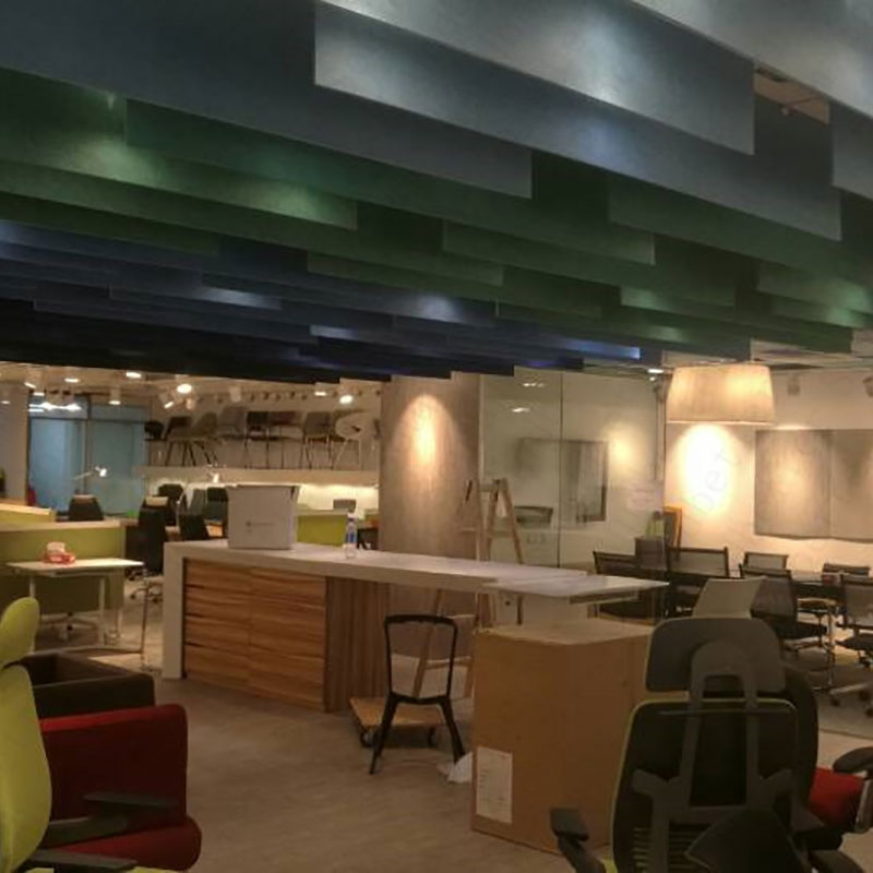 Sufity akustyczne PET wykonane są w 100% z poliestru metodą igłowania. Proces produkcji jest całkowicie fizyczny i ekologiczny, bez ścieków, emisji, odpadów. bez kleju, Porowaty charakter panelu akustycznego sprawia, że jest on dźwiękochłonny i izolujący termicznie o cechach Nietoksyczny, antyalergiczny, niedrażniący i nie zawiera spoiw formaldehydowych i ma wysoki NRC: 0,85